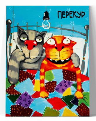 Постер с картиной Васи Ложкина ПЕРЕКУР 40Х30см